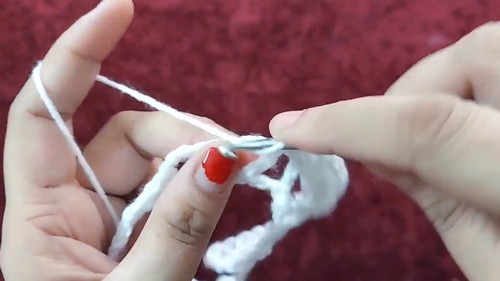 - Add 5 chains after the foundation chain and work one double crochet into the chain you were holding