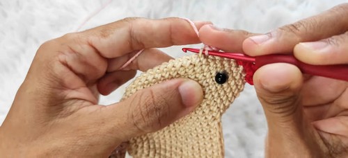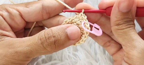 - R7: 17 single crochet, 1 increase, 17 single crochet, 1 increase. (38)