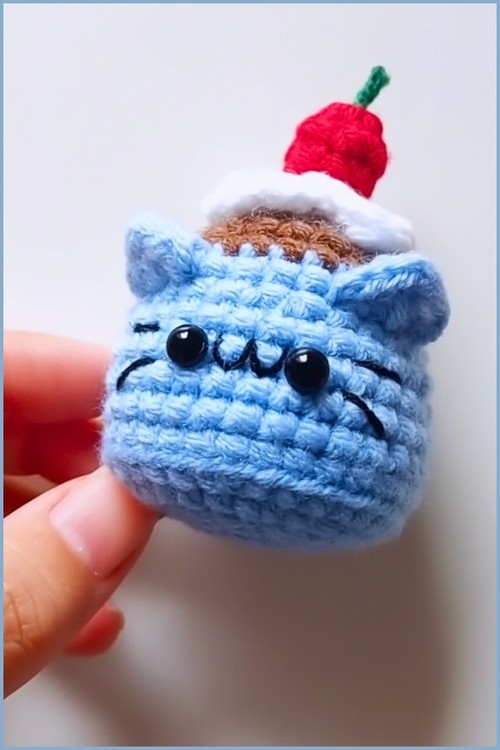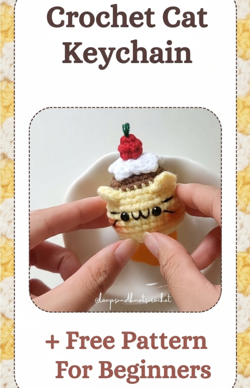 Bring a touch of sweetness to your crochet collection with this Flan Cat Keychain pattern. Perfect for beginners, this adorable design combines soft pastel colors and a dessert-inspired style to create a mini cat that looks like a flan dessert complete with chocolate drizzle, cream, and a cherry on top.