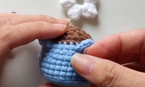 - In the next stitch: 1 hdc, 1 dc, 1 hdc.