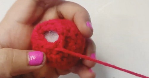 - Stuff the cherry firmly with fiberfill