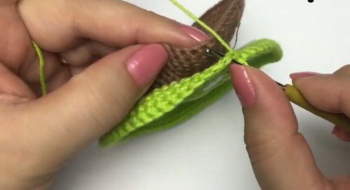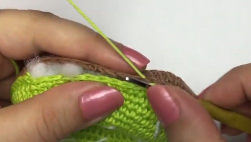 - Stuff the donut firmly with fiberfill before closing completely