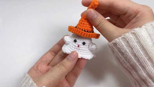 Whether you hang it as a spooky ornament, use it as a keychain, or place it on a festive display, this little ghost brings a charming, handmade spirit to your Halloween setup.