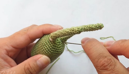 - Make a magic ring using orange yarn
