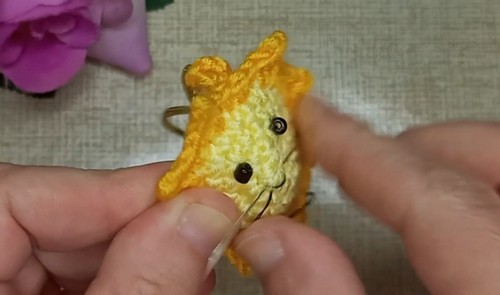 - Fasten off, weave through remaining stitches, pull tight to close, and hide tail