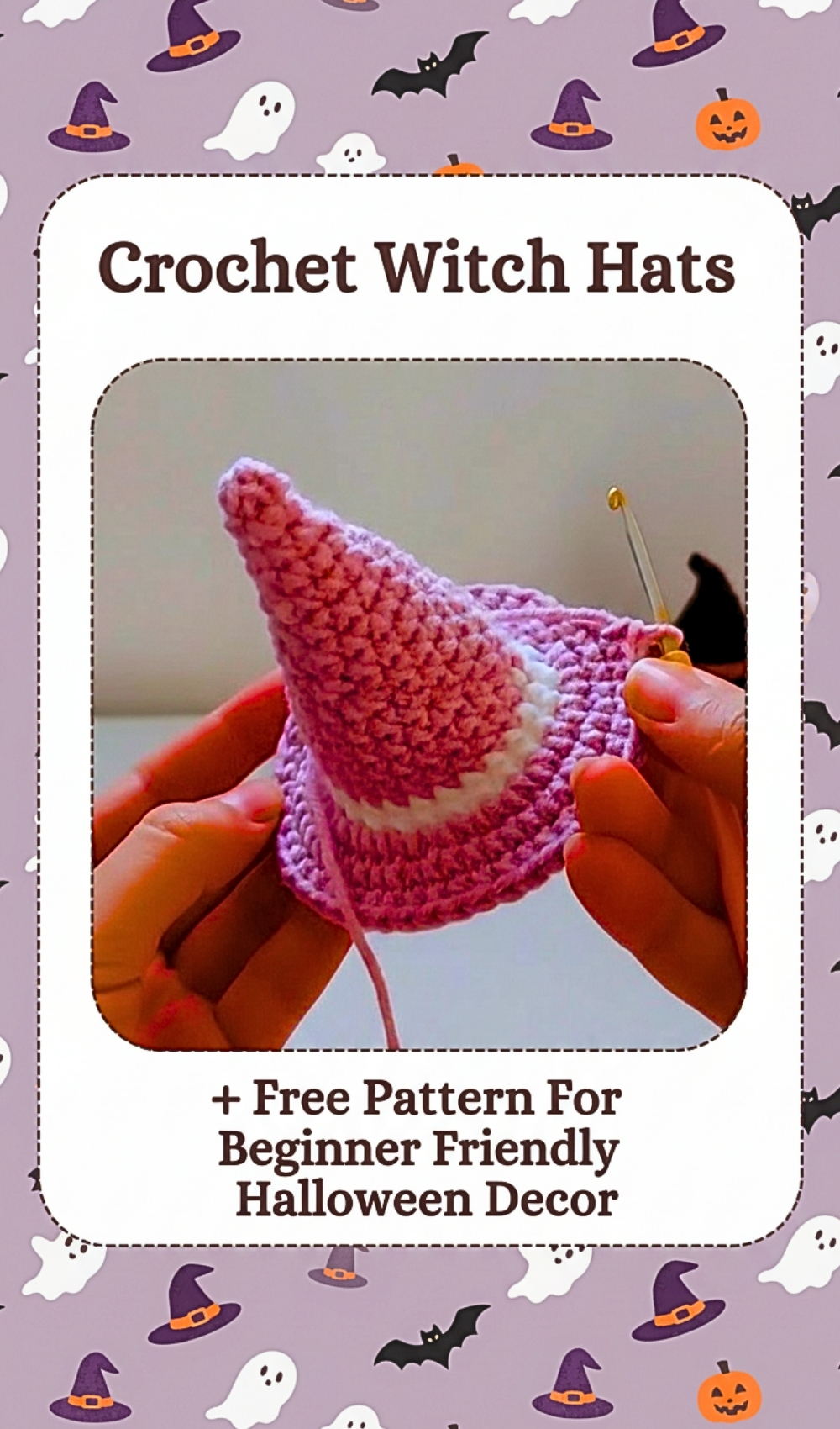 Its simple construction allows easy customization in size and color, so you can match any spooky theme or style. Whether you are preparing seasonal decor or looking for a quick crochet project, this witch hat pattern is both versatile and enjoyable to make.