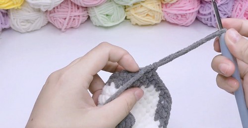 - Rnd 4: sc 4, ch 3, sc all 8 st of first ear, sc 3 in ch, sc 4 of second ear (22)
