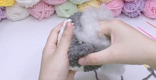 - Fasten off leaving long tail for sewing. Stuff lightly.