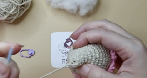 - Rnd 3: Sc 2, inc 1 repeat 3 times (12)