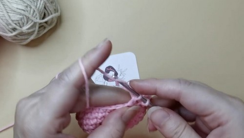 - Rnd 3: Sc 1, inc 1 repeat 6 times (18)