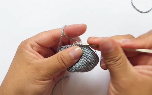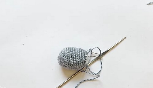 - R5 to R7: Change to grey and single crochet around for three rounds