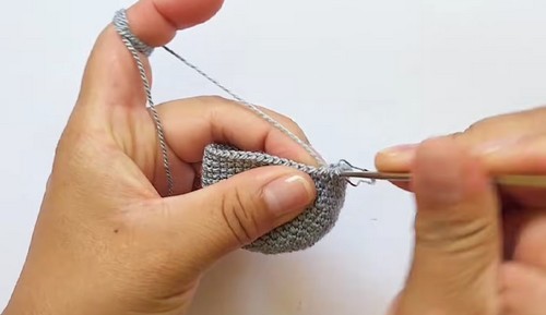 - R8 to R15: Single crochet around for 10 stitches stuffing lightly