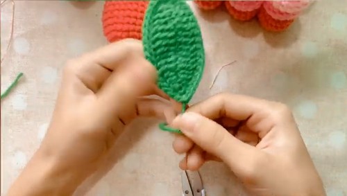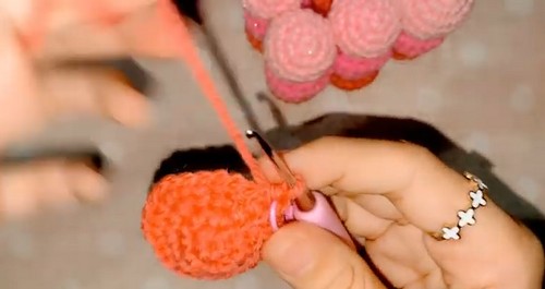 - Cut yarn, leaving a long tail, and firmly stuff.