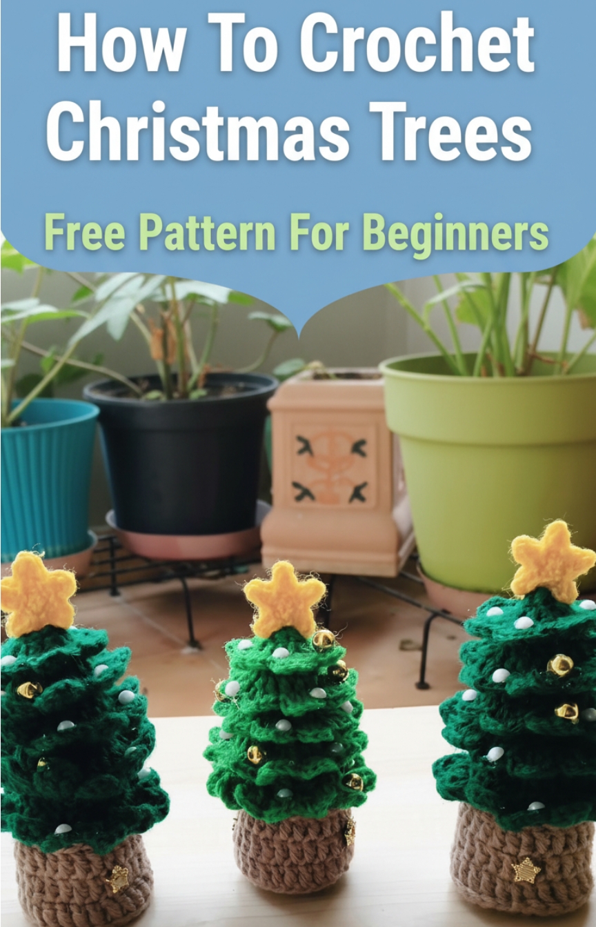 This Crochet Christmas Trees pattern is a beginner-friendly project designed to help you create a charming handmade holiday decoration with simple stitches and clear construction. The pattern guides you through making a layered cone-style tree, a sturdy crochet pot, and a cute star topper, all assembled into a festive display piece.