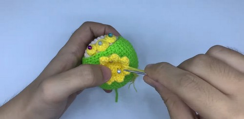 - Hair sprouts: Create small decorative loops using yellow yarn