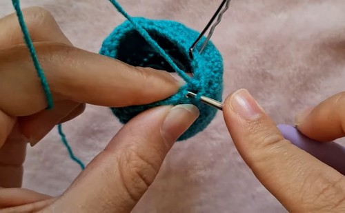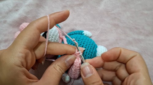 • Switch to body color yarn: sc all around for 8 rounds (8)