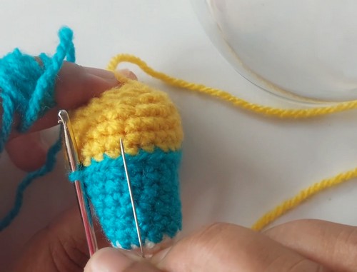 • Row 7 to Row 9: Single crochet in each stitch around, change to yellow yarn at the end of Row 9