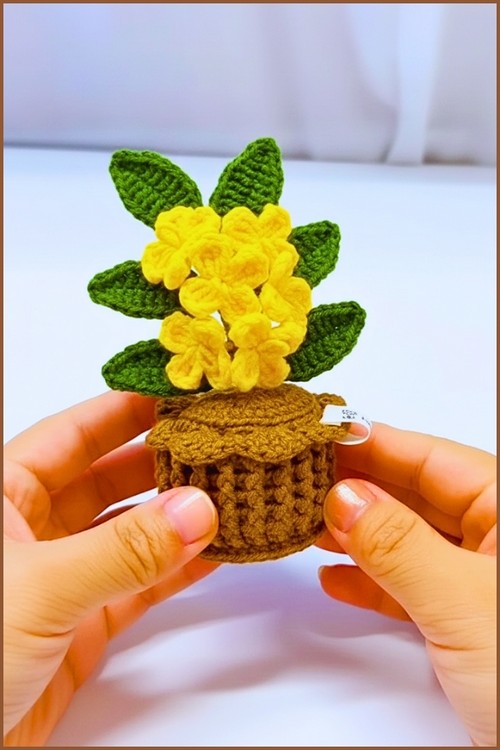 The finished piece works beautifully as home decor, a thoughtful handmade gift, or a long-lasting alternative to real plants. With simple stitches and clear construction, this project allows easy customization through color choices, flower quantity, or pot size while maintaining a polished, realistic look.