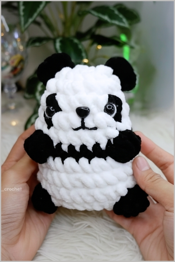 - Rounds 6–10 stabilize the body. You are no longer increasing, which allows the panda to develop height instead of width.