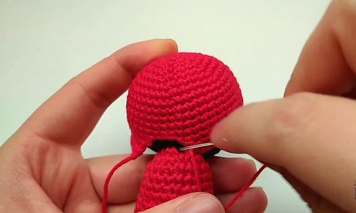 - Round 19: Change to red yarn, two single crochet and one increase repeated three times for 12 stitches