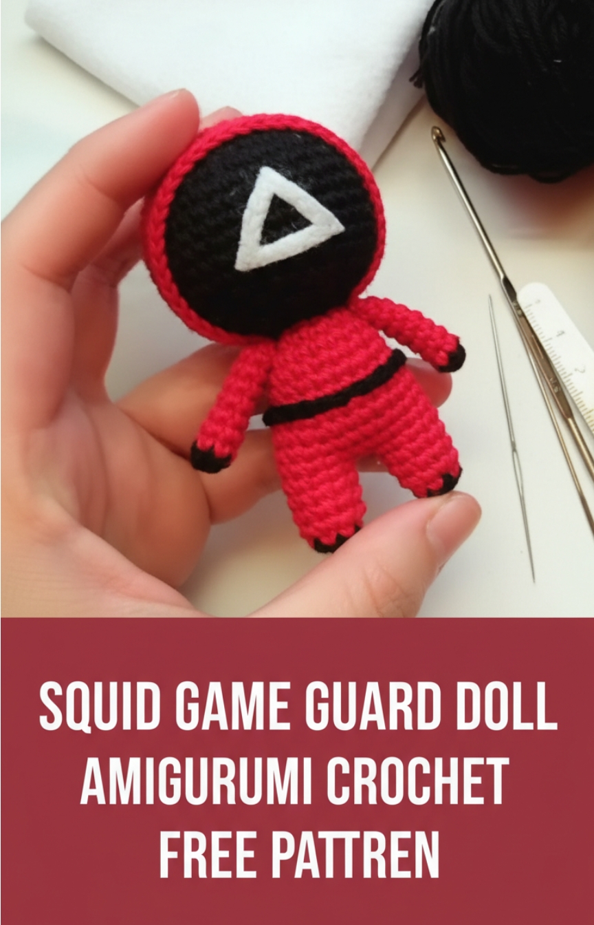 This crochet Squid Game soldier amigurumi pattern is perfect for fans who love creating character inspired dolls with clean details and bold colors. Designed with simple shaping and worked mostly in continuous rounds, this pattern guides you through making the head, body, hood, arms, and legs in an easy and logical order.