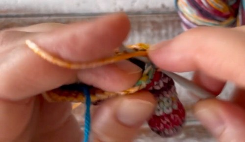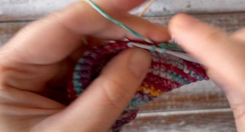 - Row 3: 12 sc in back loops only