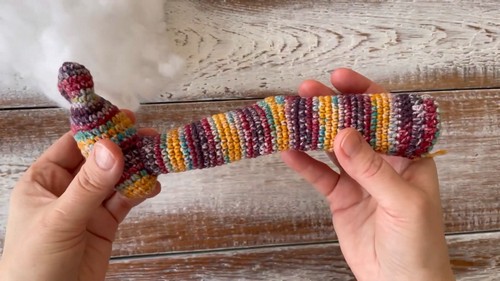 - Leg: Chain 22 and join to form a ring, work 22 sc evenly for multiple rows